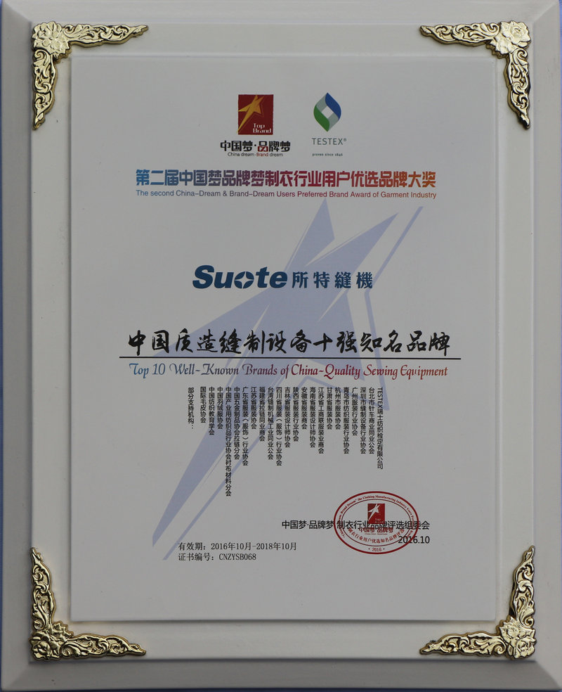 新廠房建成,使用面積3萬(wàn)多平方米。公司更名為:浙江所特縫制機(jī)械有限公司